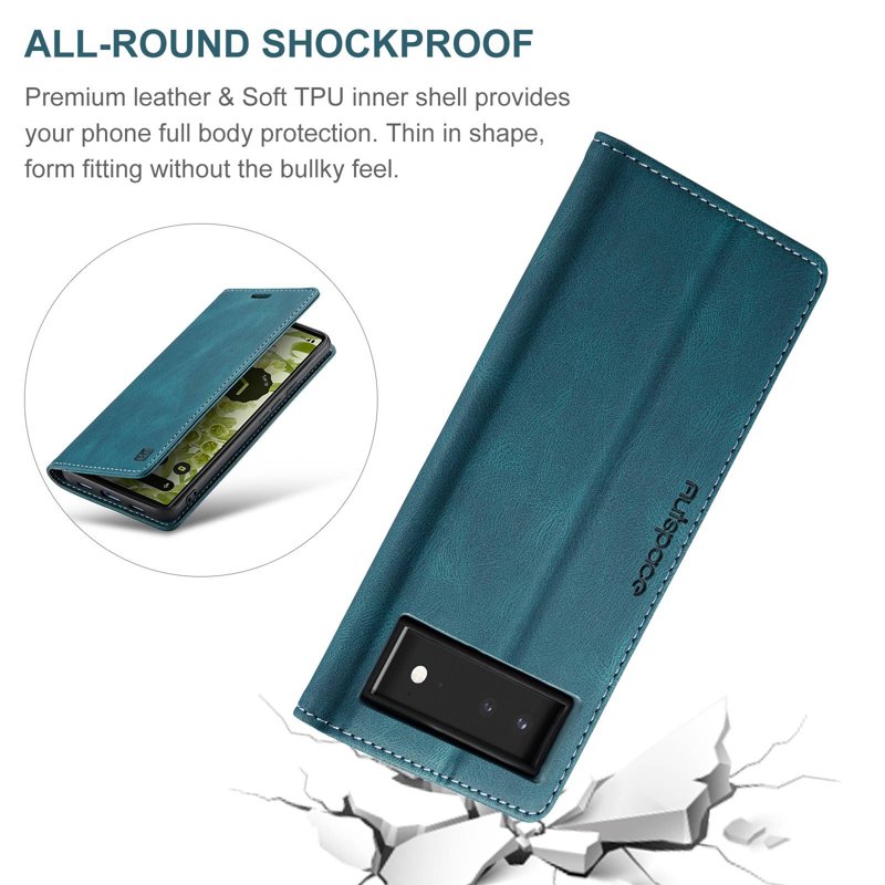 Upptäck AUTSPACE A01 Series fodral för Google Pixel 6. Detta fodral kombinerar stil och funktionalitet. Med premium PU-läder och en mjuk TPU-inre del skyddar det din telefon samtidigt som det ger en lyxig känsla. RFID-blockering skyddar din personliga information. Perfekt för den moderna användaren.