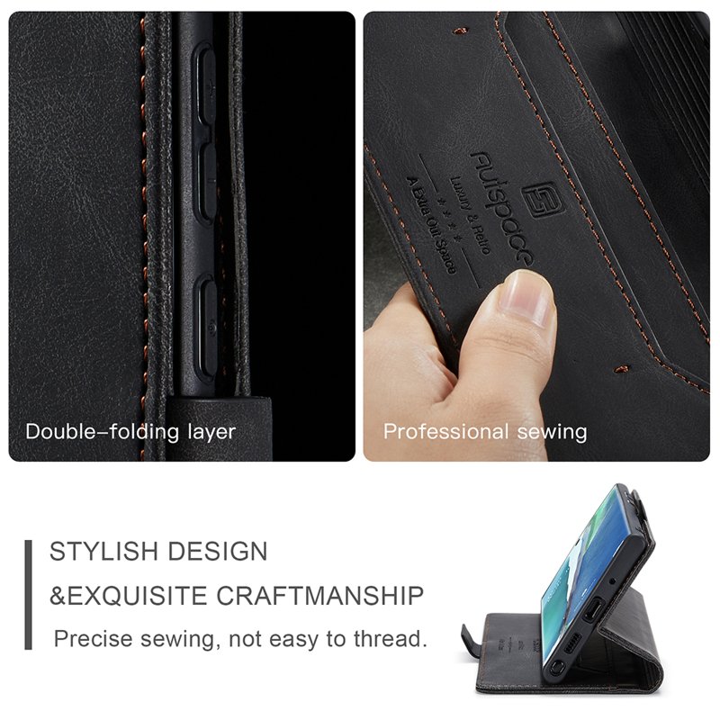 AUTSPACE A01 Series Wallet Cover - Äkta läder - Svart