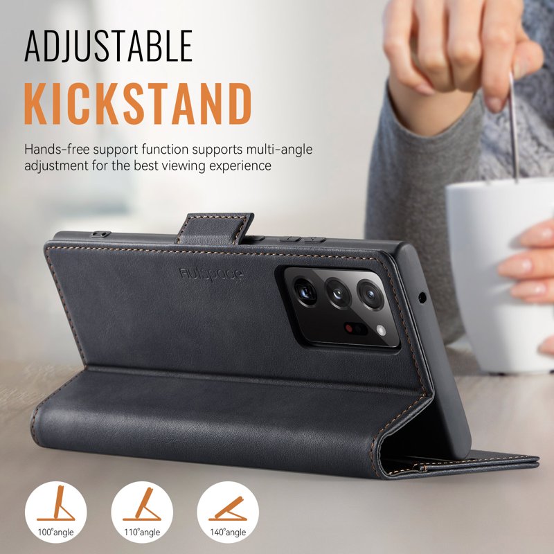 Upptäck AUTSPACE A11 fodralet för Samsung Galaxy Note20 Ultra. Detta eleganta fodral i äkta läder erbjuder både stil och funktionalitet. Med smarta funktioner som kortfack och RFID-skydd, är det den perfekta lösningen för att skydda din telefon och hålla dina viktigaste saker nära till hands.