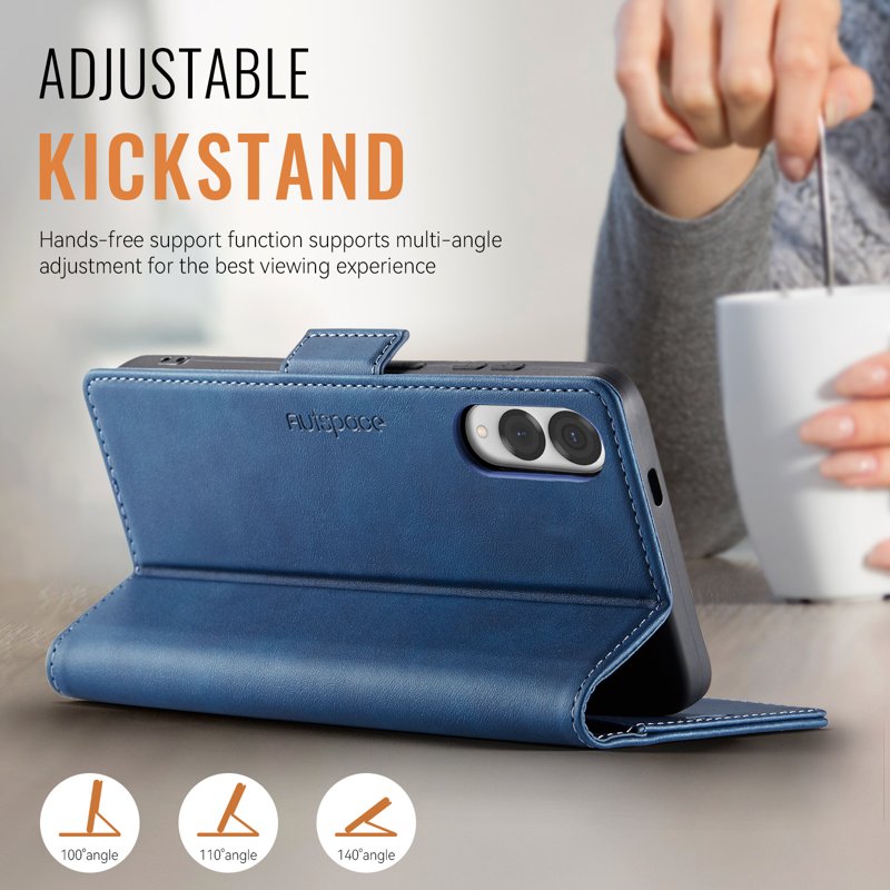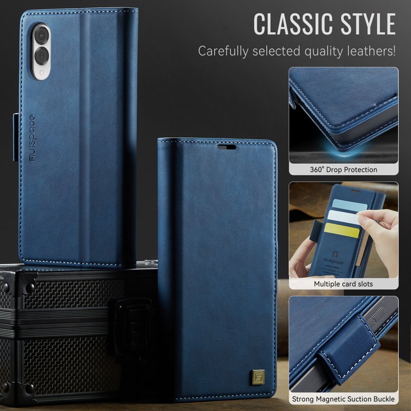 Upptäck AUTSPACE A11 Fodral för Samsung Galaxy S25 Edge. Detta eleganta fodral är tillverkat av äkta läder och TPU, vilket ger både stil och skydd. Med smarta funktioner som kortfack och RFID-skydd är detta fodral perfekt för den moderna användaren.