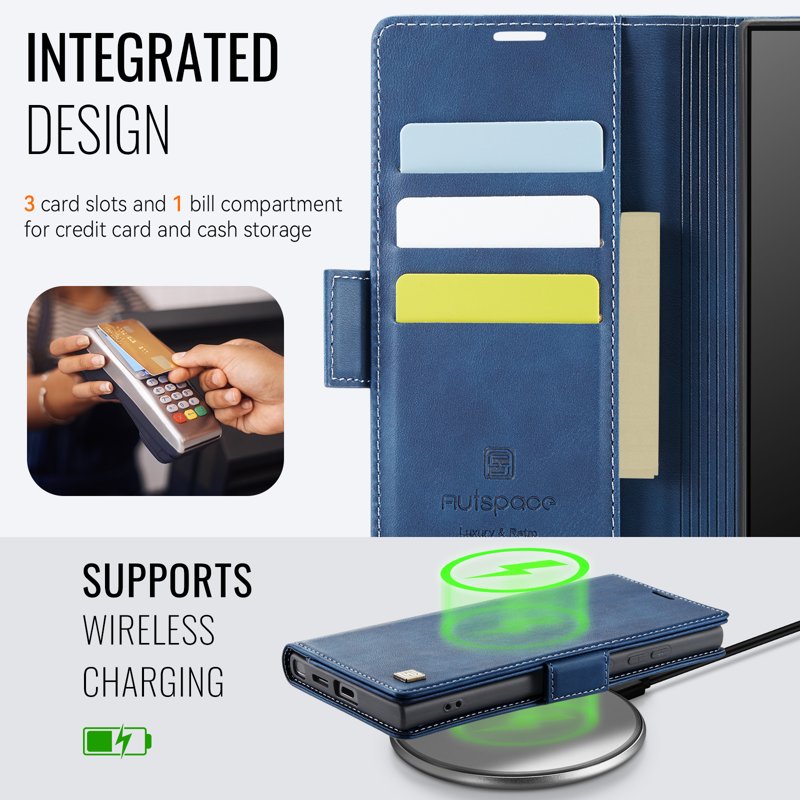 Upptäck AUTSPACE A11 fodralet för Samsung Galaxy S25 Ultra. Detta eleganta fodral i äkta läder kombinerar stil och funktionalitet. Med smarta funktioner som kortfack och RFID-skydd, erbjuder det både säkerhet och bekvämlighet. Skydda din telefon med stil och gör din vardag enklare.