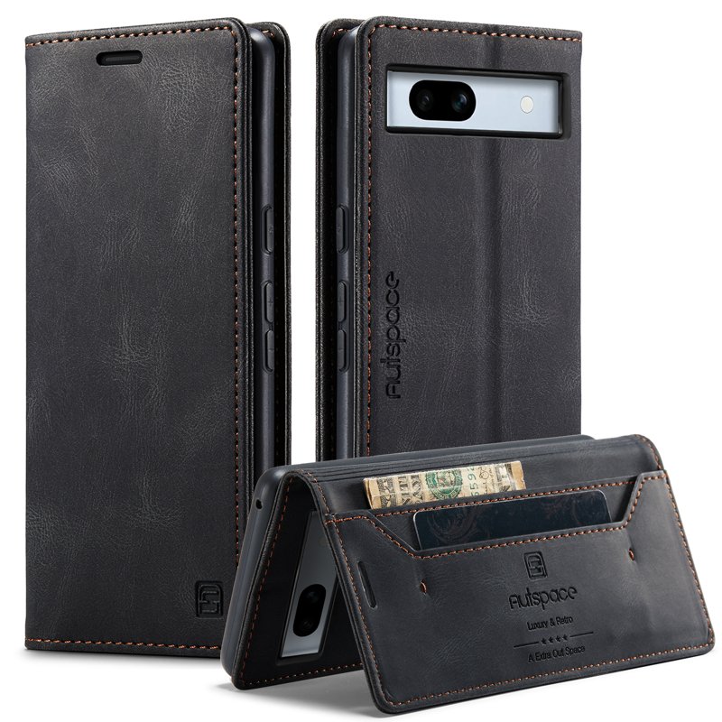AUTSPACE Google Pixel 7a Wallet Fodral Äkta läder - Svart