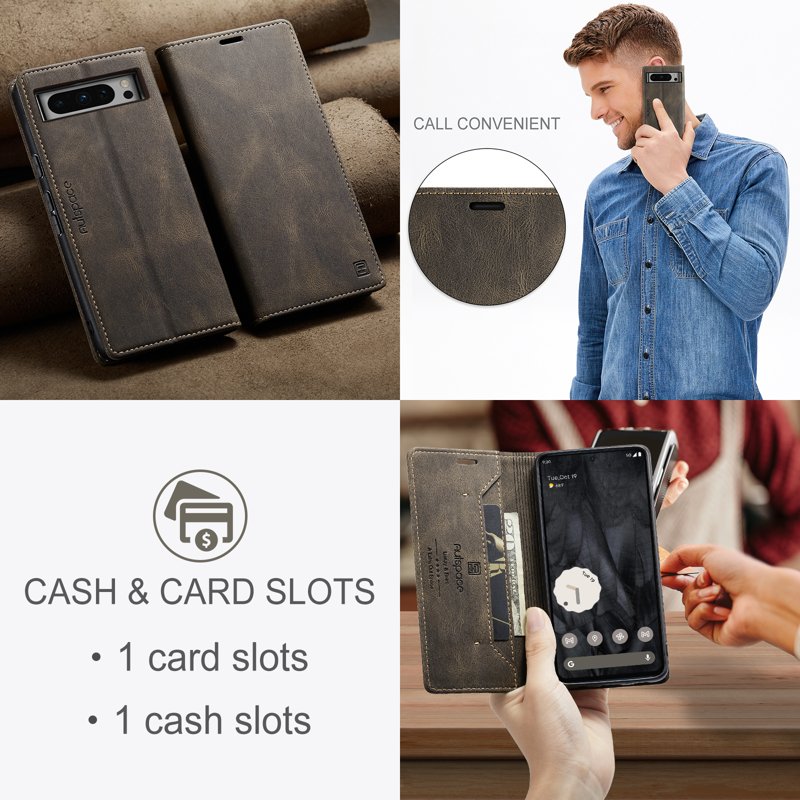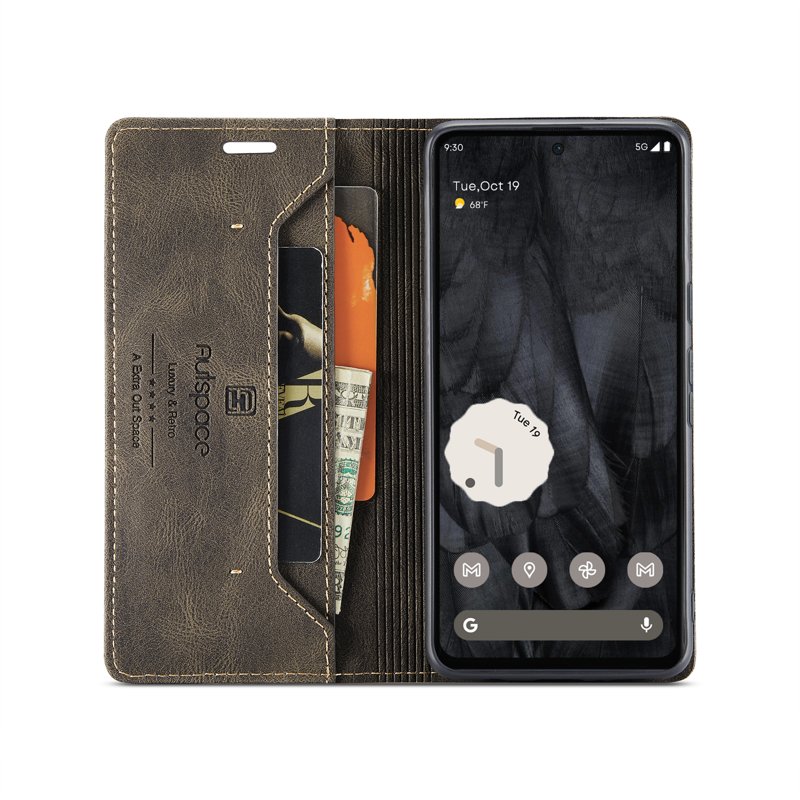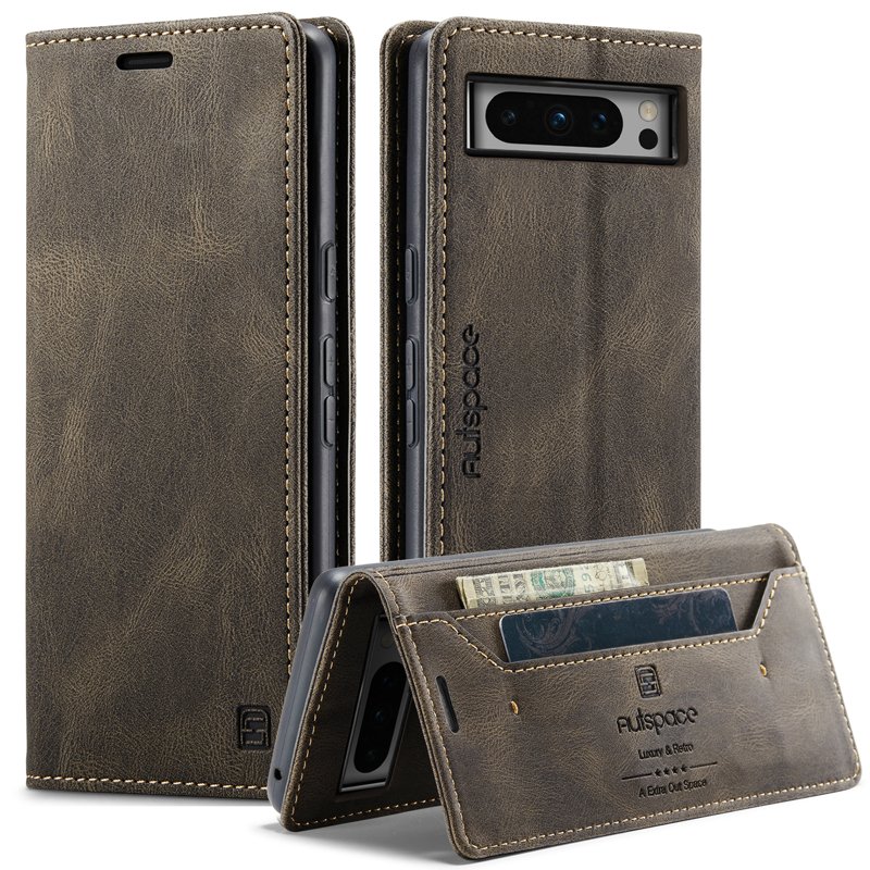 AUTSPACE Google Pixel 8 Pro Wallet Fodral i Äkta Läder - Kaffe