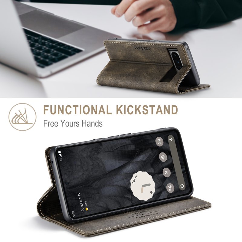 Upptäck AUTSPACE Google Pixel 8 Pro Wallet Fodral i äkta läder. Detta fodral kombinerar stil och funktionalitet. Med högkvalitativt material och smarta funktioner skyddar det din telefon och gör det enkelt att ha med sig dina viktigaste kort och kontanter.