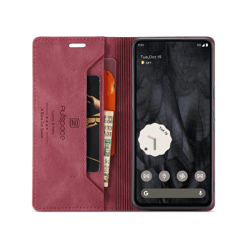 AUTSPACE Google Pixel 8 Pro Wallet Fodral Äkta läder - Röd