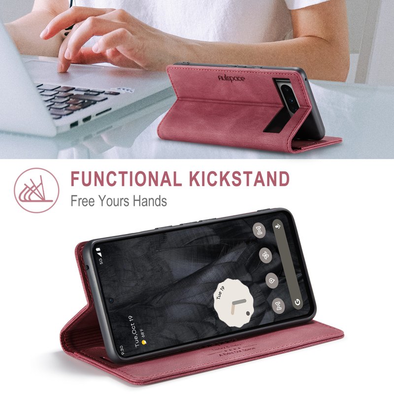 Upptäck AUTSPACE Google Pixel 8 Pro Wallet Fodral i äkta läder. Detta fodral kombinerar stil och funktionalitet. Med högkvalitativt material och smart design skyddar det din telefon samtidigt som det erbjuder praktiska lösningar för dina kort och kontanter.
