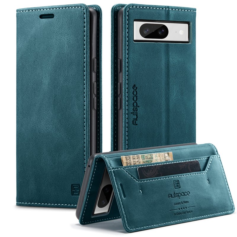 AUTSPACE Google Pixel 8 Wallet Fodral i Äkta Läder - Blå