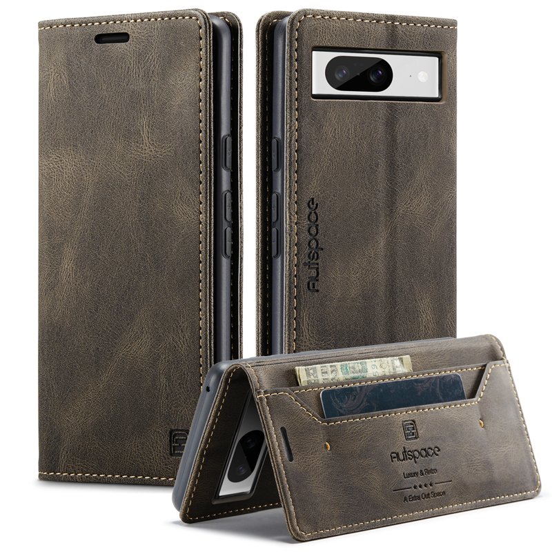 AUTSPACE Google Pixel 8 Wallet Fodral Äkta läder - Kaffe