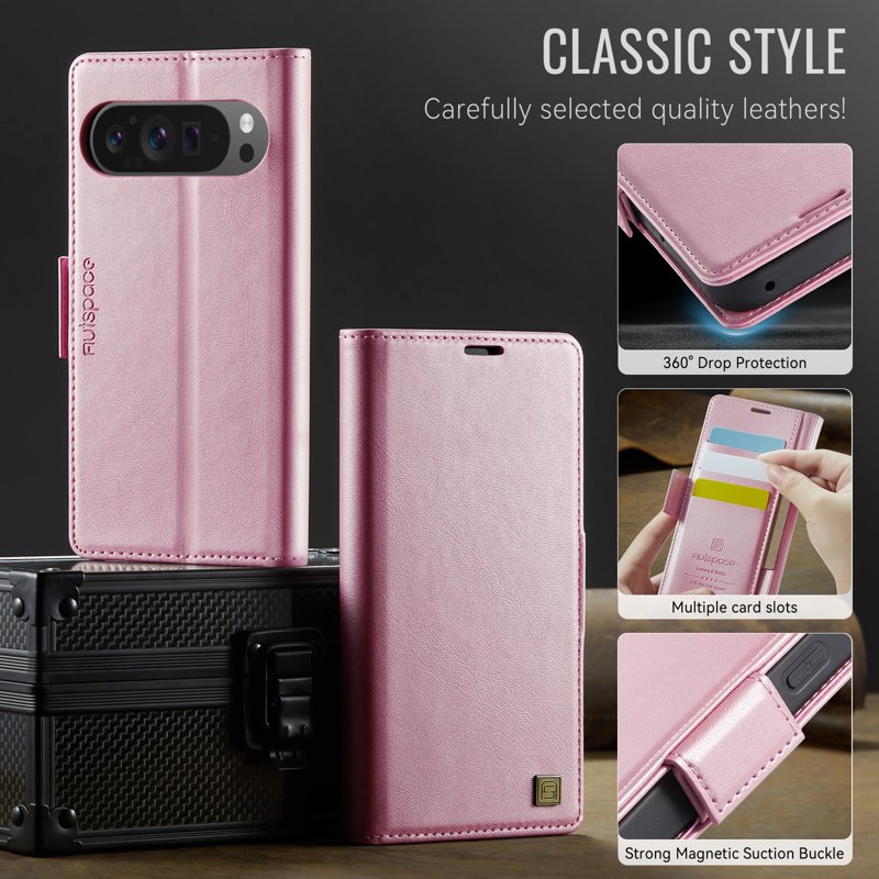 AUTSPACE Google Pixel 9 Pro Fodral i Äkta Läder - Rosa