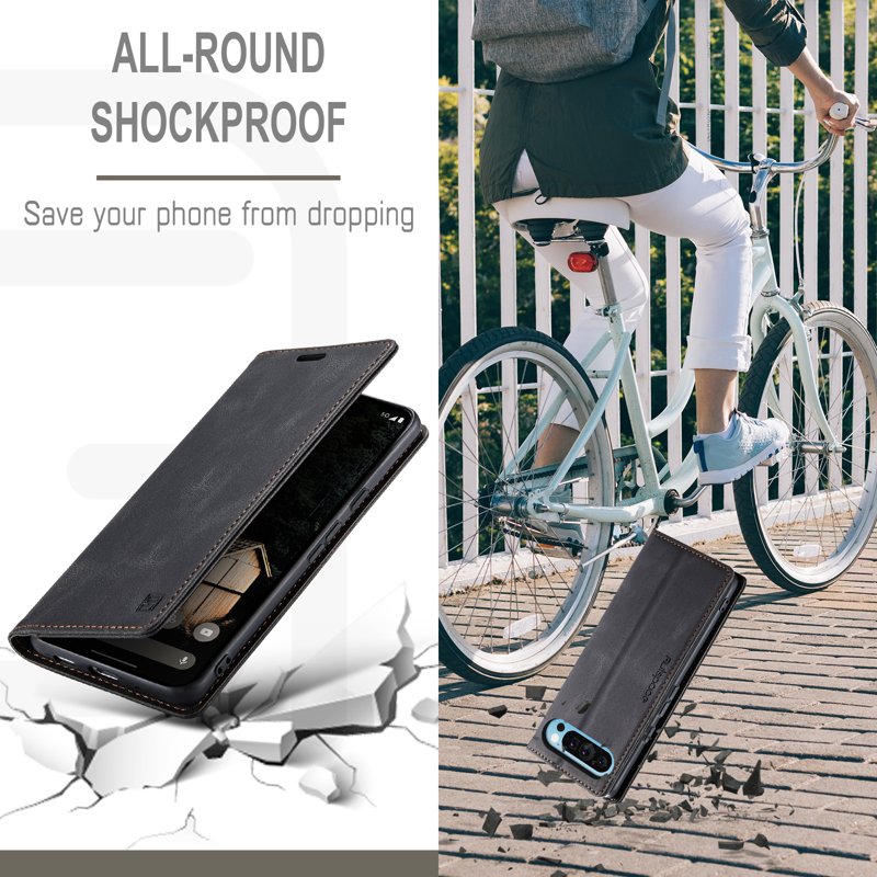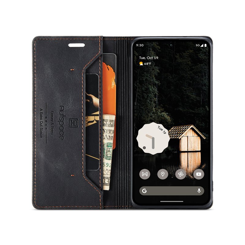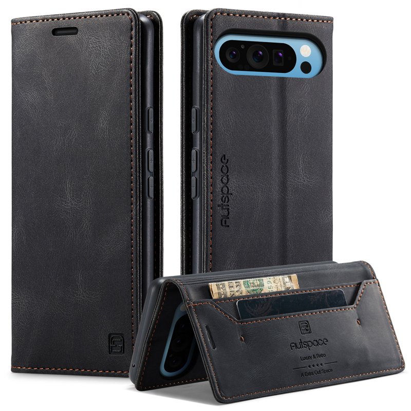 AUTSPACE Google Pixel 9 Pro Wallet Fodral Äkta läder - Svart