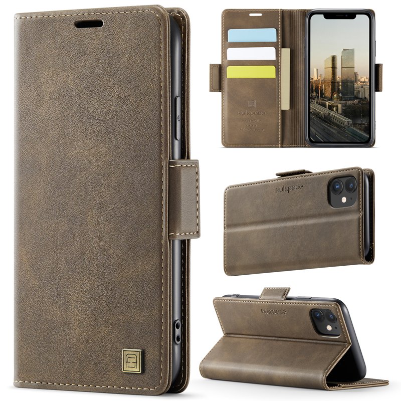 AUTSPACE iPhone 11 Fodral Retro Läder - Brun - RFID Blocking
