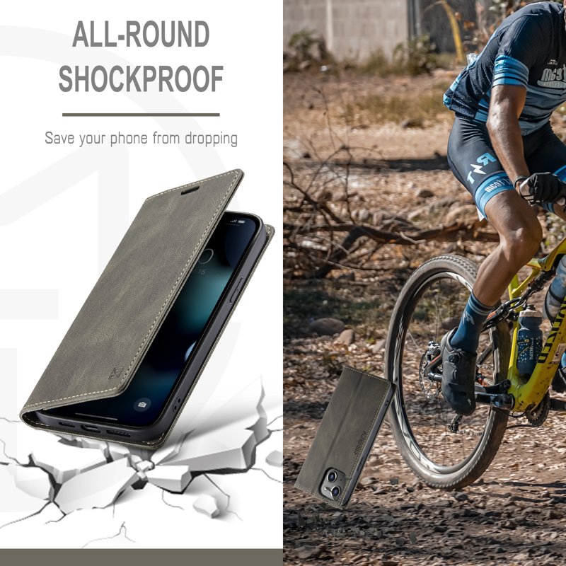 Upptäck AUTSPACE iPhone 13 Skal i Äkta Läder i färgen Kaffe. Detta skal kombinerar stil och funktionalitet. Med högkvalitativt PU-läder och en mjuk TPU-inre del erbjuder det ett elegant grepp. Skydda din iPhone 13 med detta skal som också skyddar din personliga information.