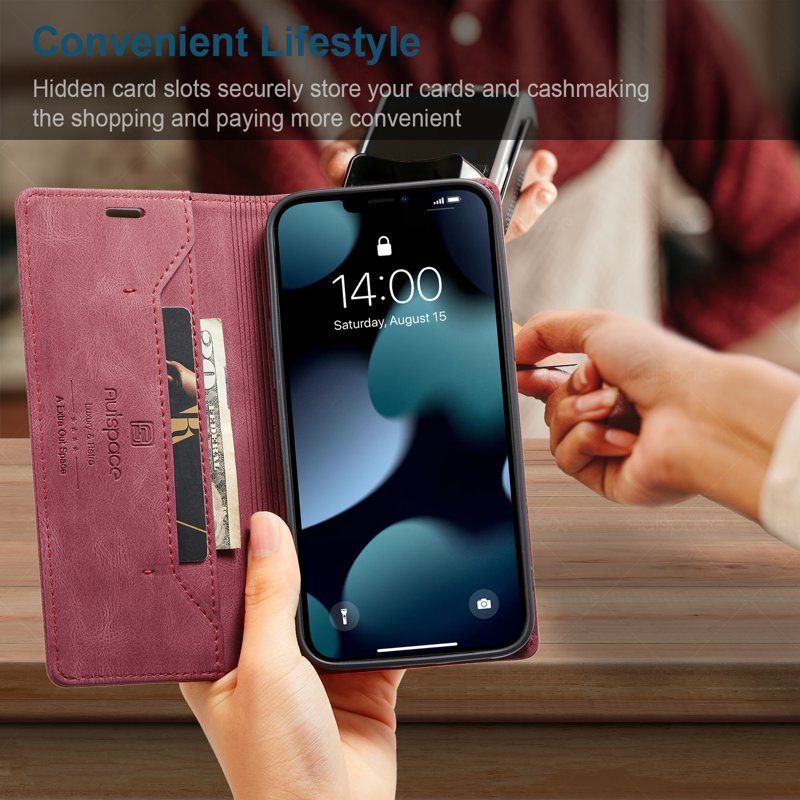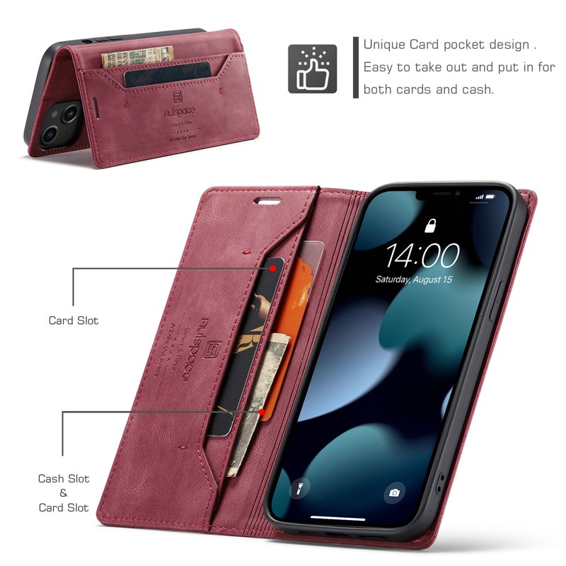 AUTSPACE iPhone 13 Skal i Äkta Läder - Röd