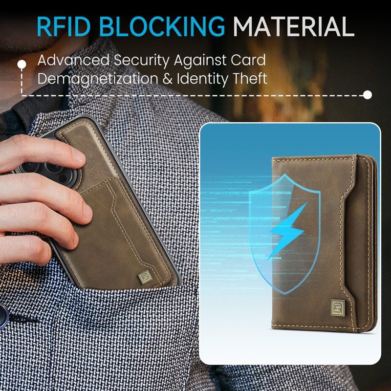- RFID-blockering och flera kortfack - Inkluderar 6 kortfack för ID, kreditkort och kontanter, med RFID-skydd för att förhindra stöld av kortinformation.