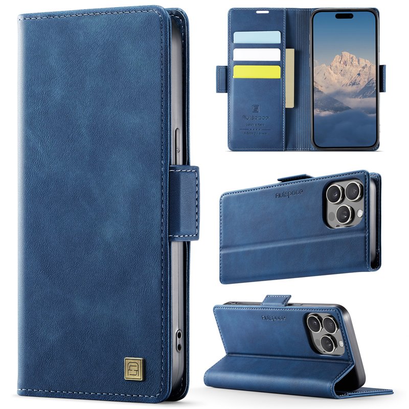 AUTSPACE iPhone 14 Pro Fodral Retro Läder - Blå