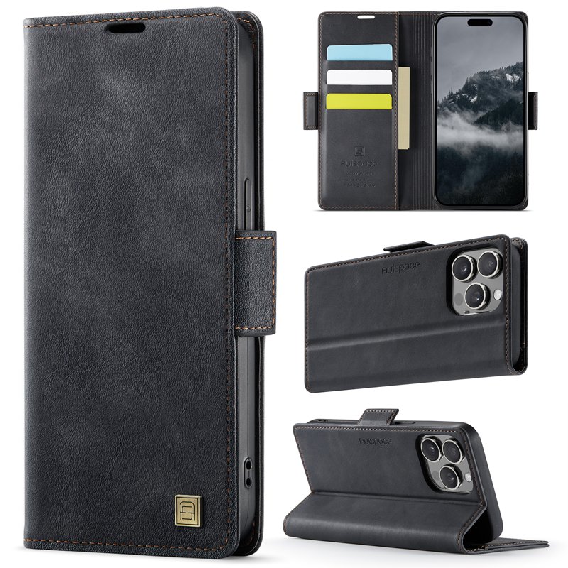 AUTSPACE iPhone 14 Pro Fodral Retro Läder - Svart