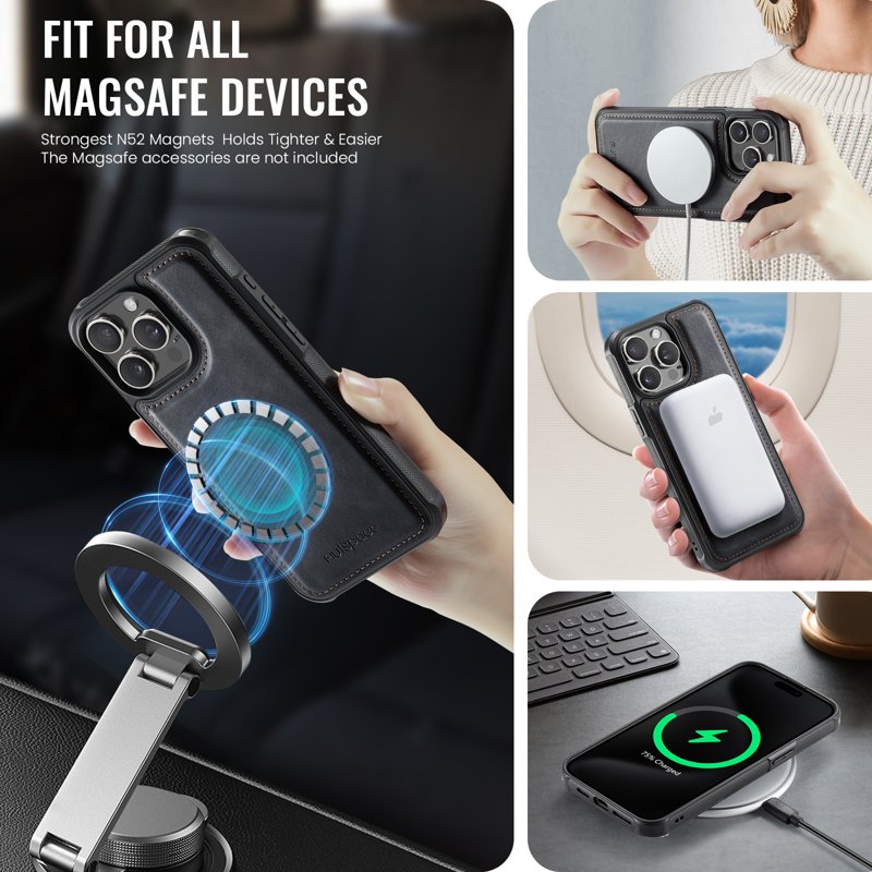 - Magnetisk avtagbar design - Fodralet har en avtagbar magnetisk korthållare som enkelt fästs och tas bort för flexibel användning.