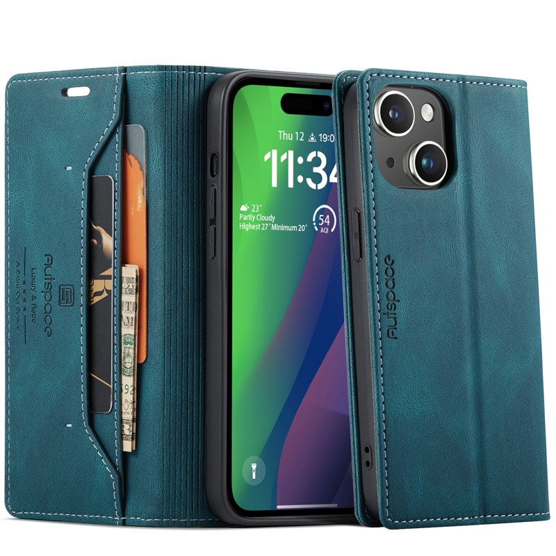 AUTSPACE iPhone 15 Wallet Fodral Äkta läder - Blå