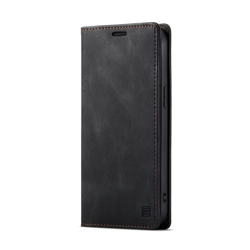 AUTSPACE iPhone 15 Wallet Fodral Äkta läder - Svart