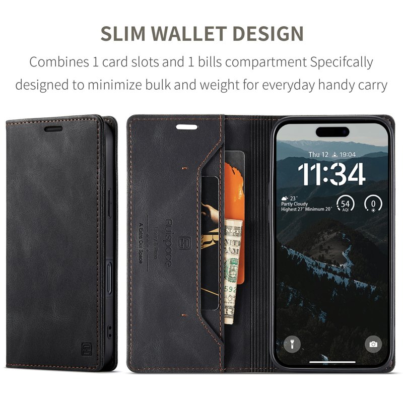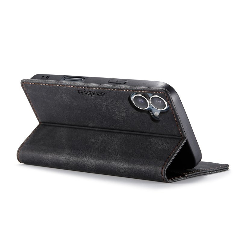 AUTSPACE iPhone 16 Wallet Fodral Äkta läder - Svart