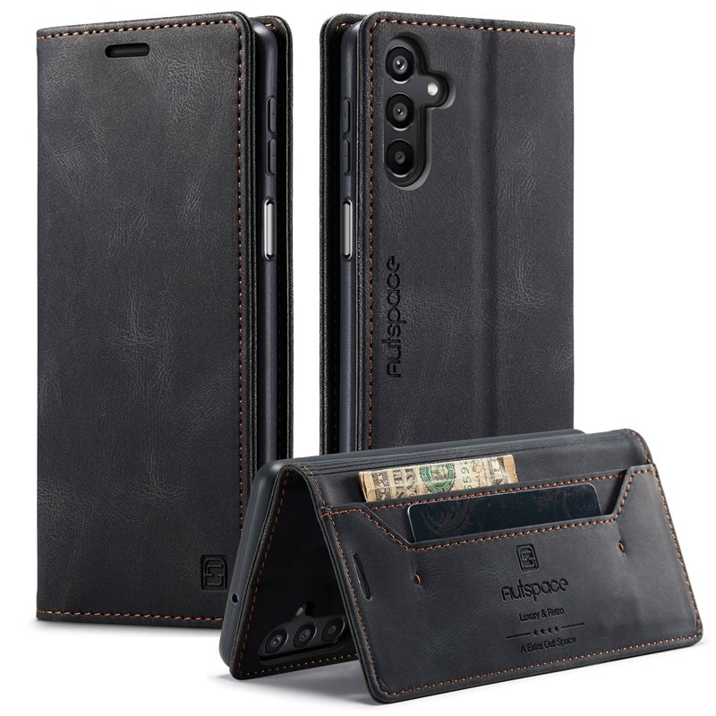 AUTSPACE Samsung Galaxy A16 5G Wallet Fodral Äkta läder - Svart