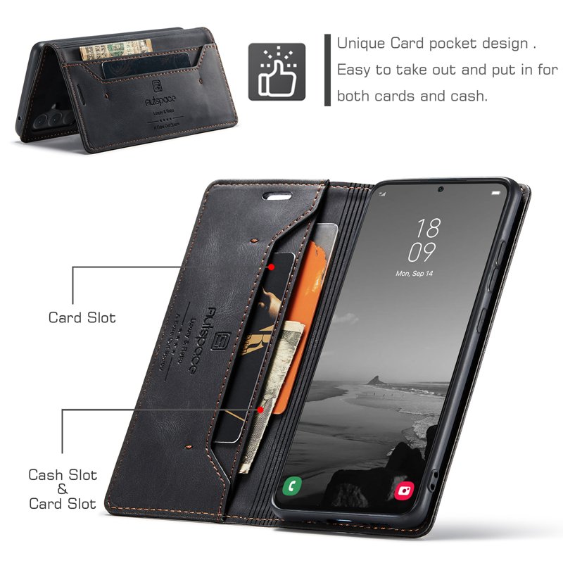 Upptäck AUTSPACE Samsung Galaxy A35 5G Wallet Fodral i äkta läder. Detta fodral är designat för att kombinera stil och funktionalitet. Med högkvalitativt material och smarta funktioner skyddar det din telefon samtidigt som det erbjuder praktiska lösningar för din vardag.