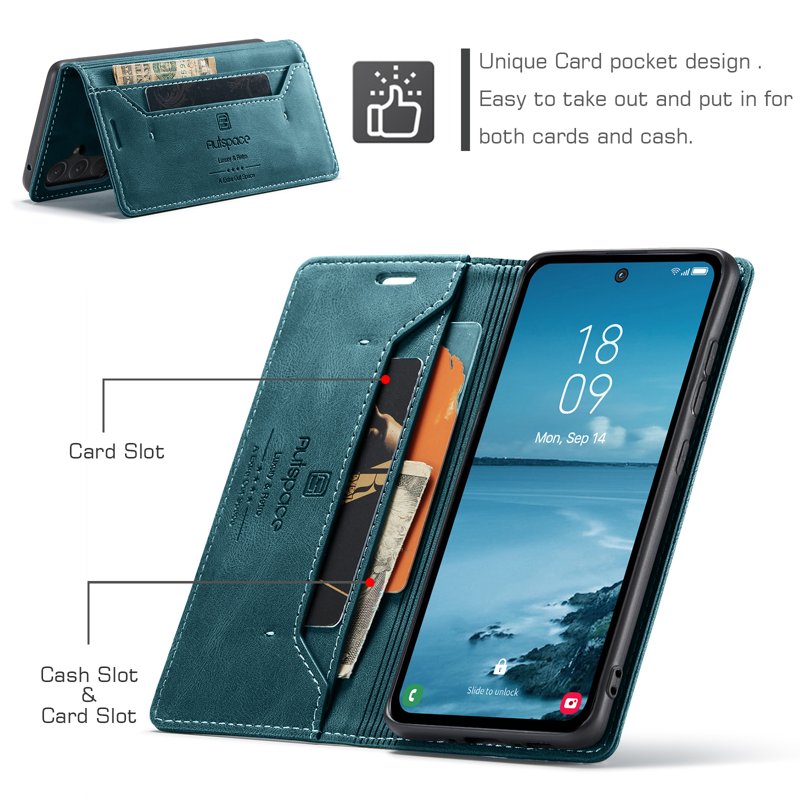 Handla denna produkt AUTSPACE Samsung Galaxy A55 5G Wallet Fodral Äkta läder - Blå