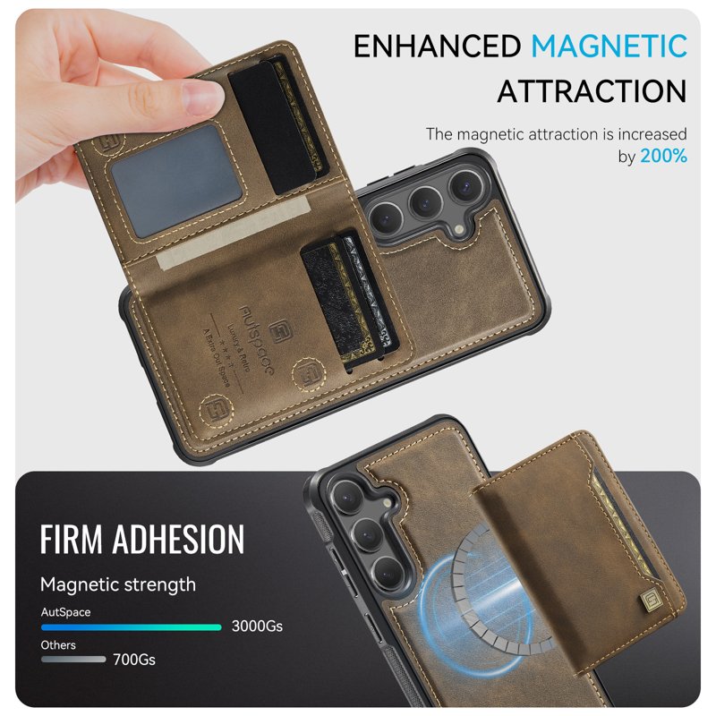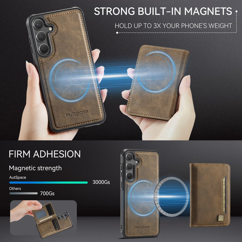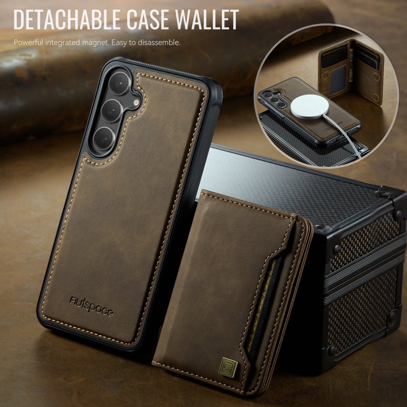 Upptäck AUTSPACE Samsung Galaxy S24/S25 fodral i äkta läder. Detta eleganta fodral erbjuder både stil och funktionalitet. Med sin magnetiska avtagbara design och flera kortfack är det perfekt för den moderna användaren. Skydda din telefon samtidigt som du har allt du behöver nära till hands.