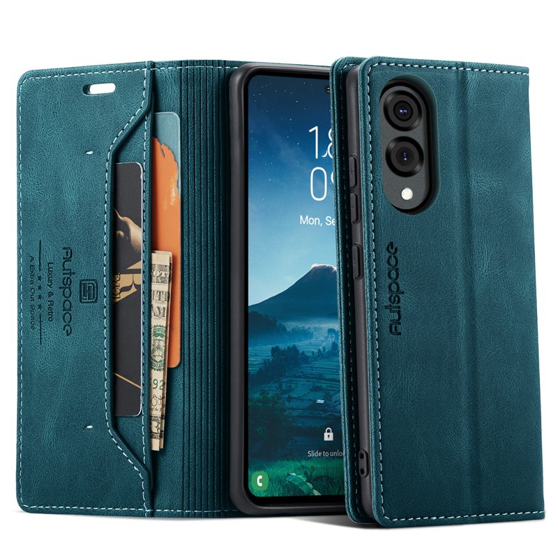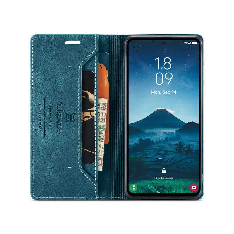 Upptäck AUTSPACE Samsung Galaxy S25 Edge Wallet Fodral i äkta läder. Detta fodral kombinerar stil och funktionalitet. Med högkvalitativt material och smarta funktioner skyddar det din telefon och gör det enkelt att ha med sig dina viktigaste kort och kontanter.