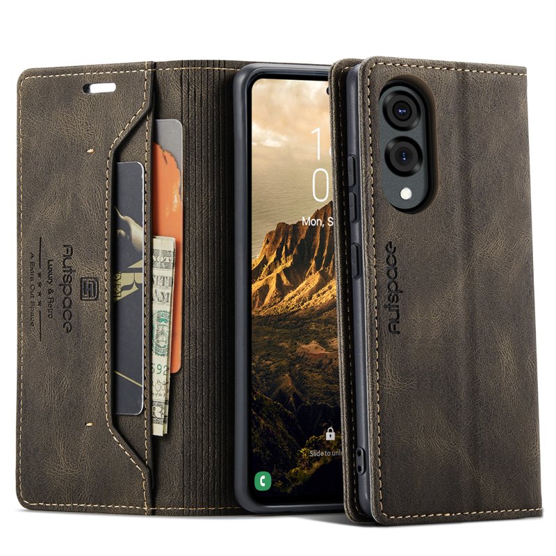 AUTSPACE Samsung Galaxy S25 Edge Wallet Fodral Äkta läder - Kaffe