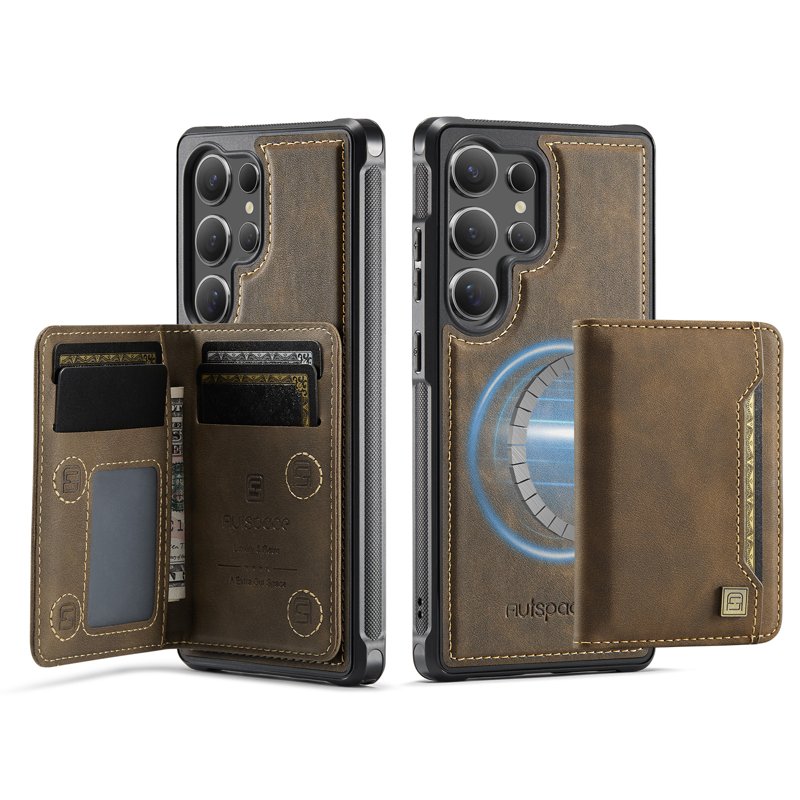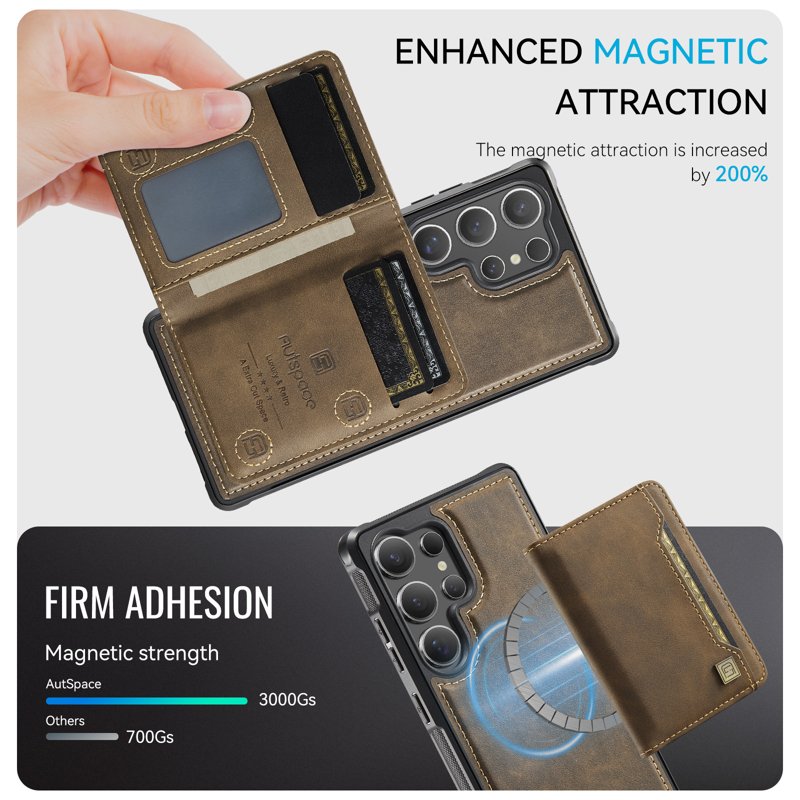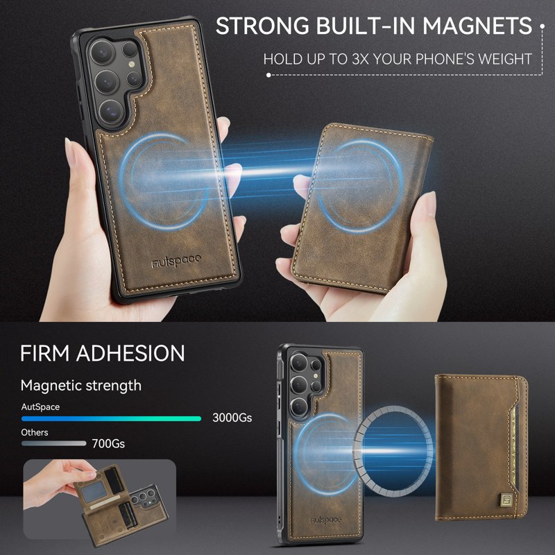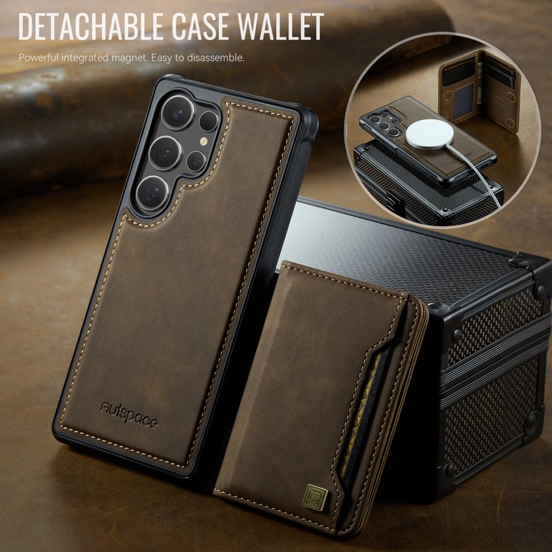 Skydda din Samsung Galaxy S25 Ultra med AUTSPACE fodral i äkta läder. Detta fodral erbjuder både stil och funktionalitet. Med sin magnetiska avtagbara design och RFID-skyddade kortfack är det perfekt för den moderna användaren. Håll dina kort och kontanter säkra och nära till hands.