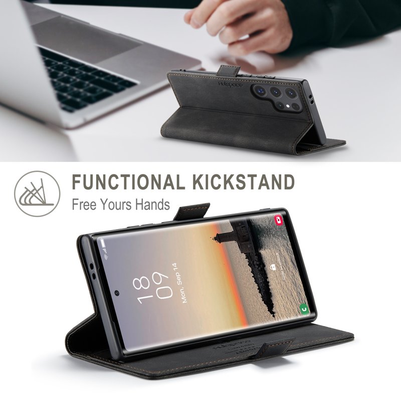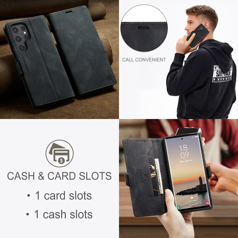 AUTSPACE Samsung Galaxy S25 Ultra Wallet Fodral Äkta läder - Svart
