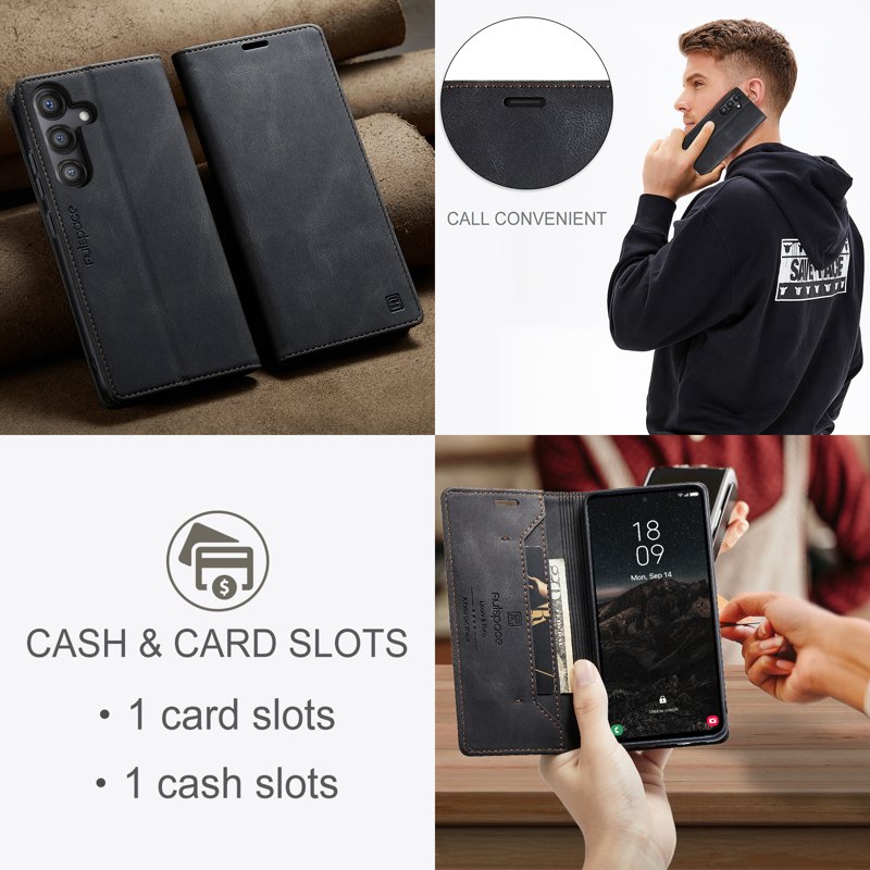 Upptäck AUTSPACE Samsung Galaxy S25 Wallet Fodral i äkta läder. Detta fodral kombinerar stil och funktionalitet. Med högkvalitativt material och smarta funktioner skyddar det din telefon och gör det enkelt att ha med sig dina viktigaste kort och kontanter.