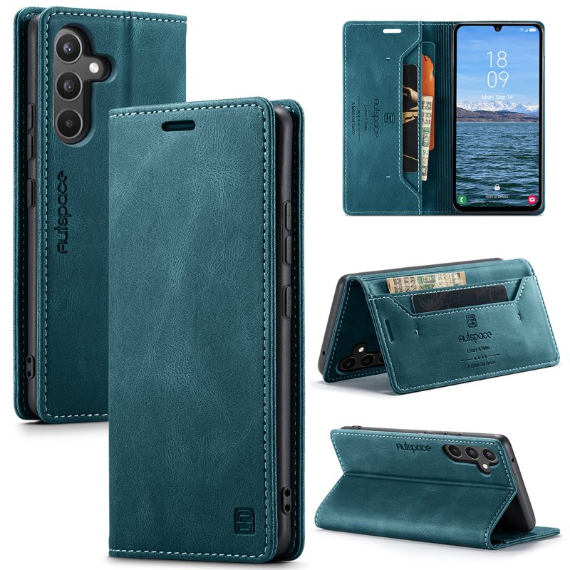 AUTSPACE Wallet Fodral för Samsung Galaxy A34 5G - Äkta läder - Blå