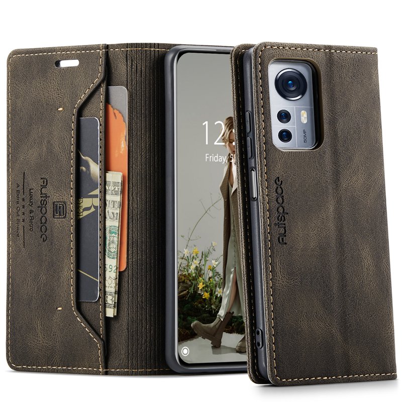 AUTSPACE Xiaomi 12X 5G Wallet Fodral Äkta läder - Kaffe