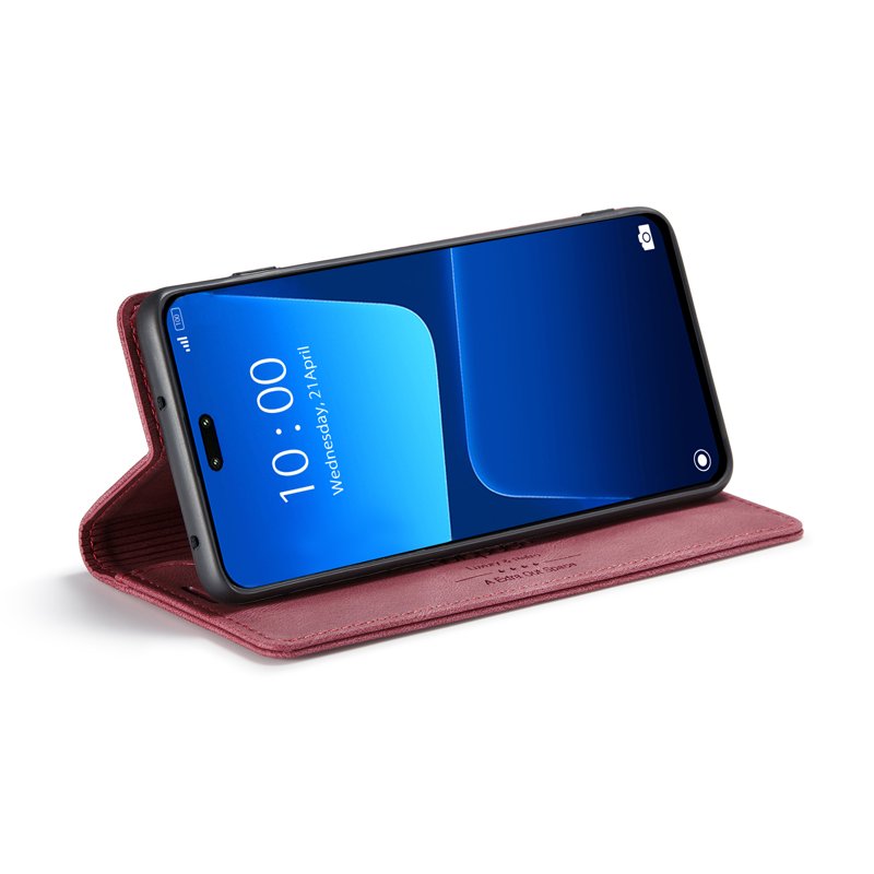 AUTSPACE Xiaomi 13 Lite Wallet Fodral Äkta läder - Röd
