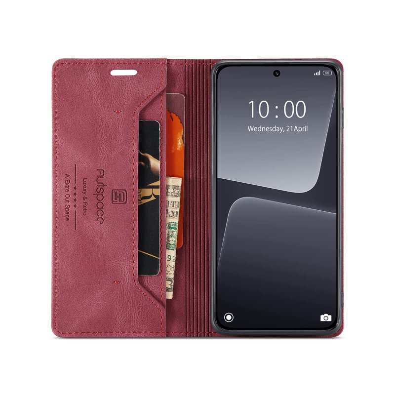 Handla denna produkt AUTSPACE Xiaomi 13 Pro 5G Wallet Fodral Äkta läder - Röd