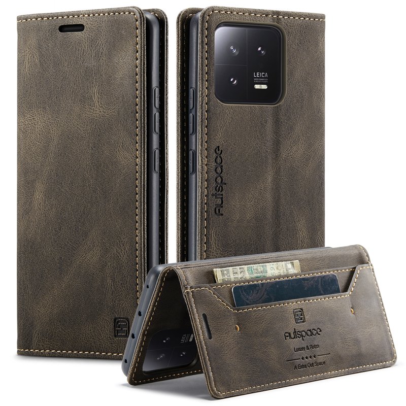 AUTSPACE Xiaomi 13 Wallet Fodral Äkta läder - Kaffe
