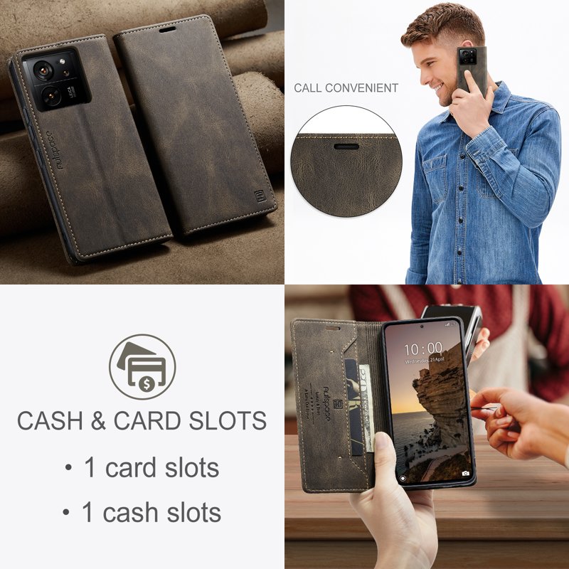 Upptäck AUTSPACE Xiaomi 13T Pro Wallet Fodral i äkta läder. Detta fodral kombinerar stil och funktionalitet. Med högkvalitativt material och smart design skyddar det din telefon samtidigt som det erbjuder plats för dina kort och kontanter. Perfekt för den moderna användaren som värdesätter både säkerhet och elegans.