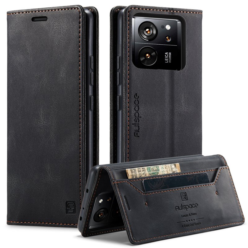AUTSPACE Xiaomi 13T Pro Wallet Fodral i Äkta Läder - Svart