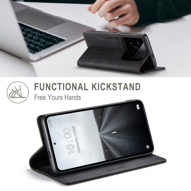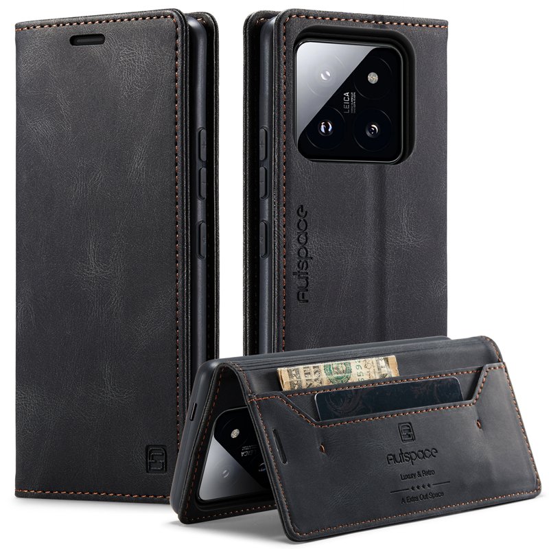 AUTSPACE Xiaomi 14 Pro Wallet Fodral Äkta läder - Svart