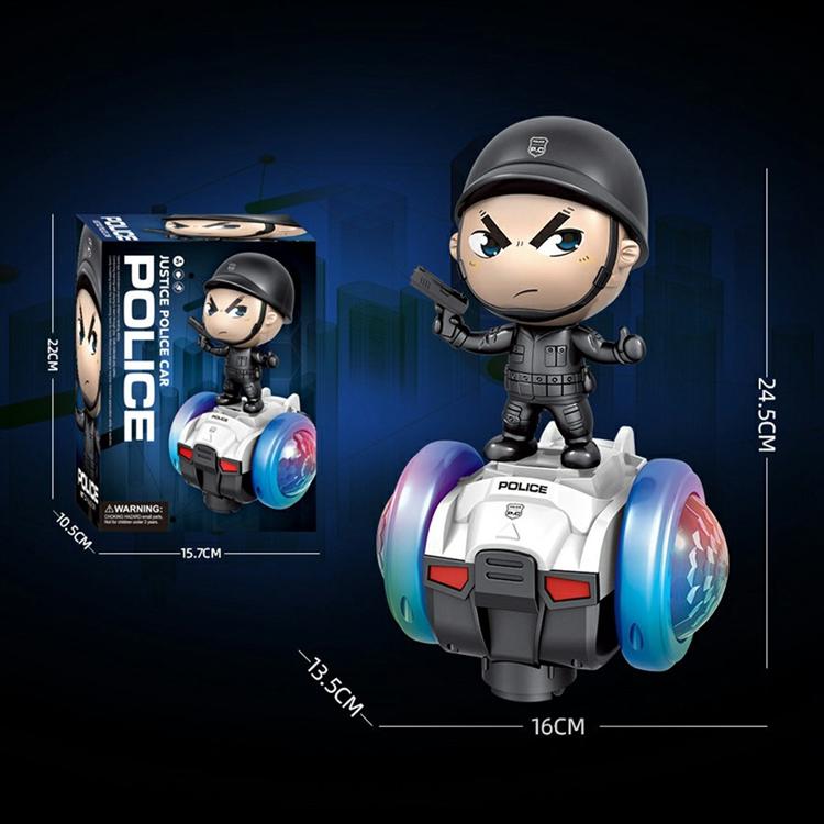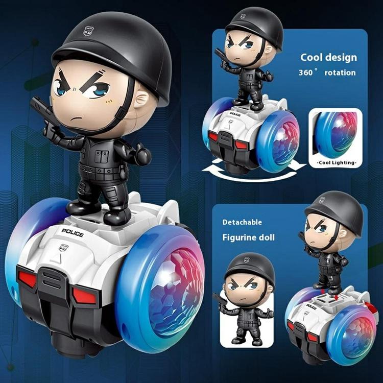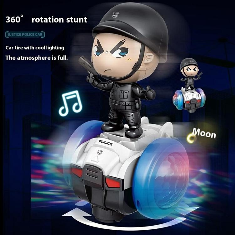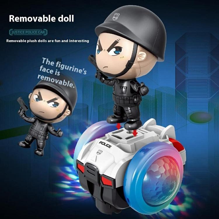 Avtagbar polisfigur 360 graders roterande elektrisk balansbilleksak med musik och ljus för barn för Barn (Ålder 3+) - R02 Balansbil