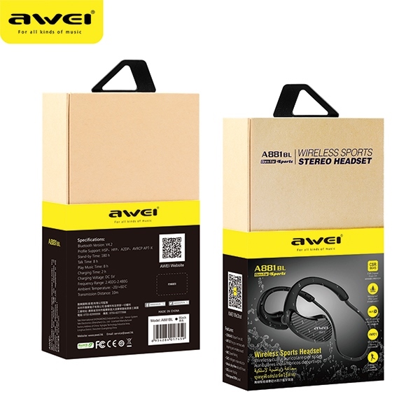Awei A881BL är designade för att leverera exceptionell ljudkvalitet och optimal bekvämlighet. Med avancerad Bluetooth-teknik, HiFi-ljud och vattentåliga egenskaper är dessa hörlurar perfekta för både vardag och sportiga aktiviteter.