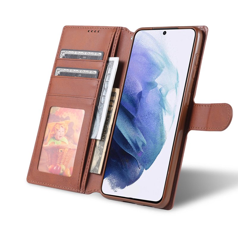AZNS Dual-sided Magnetic Clasp Wallet Fodral PU Läder - Brun