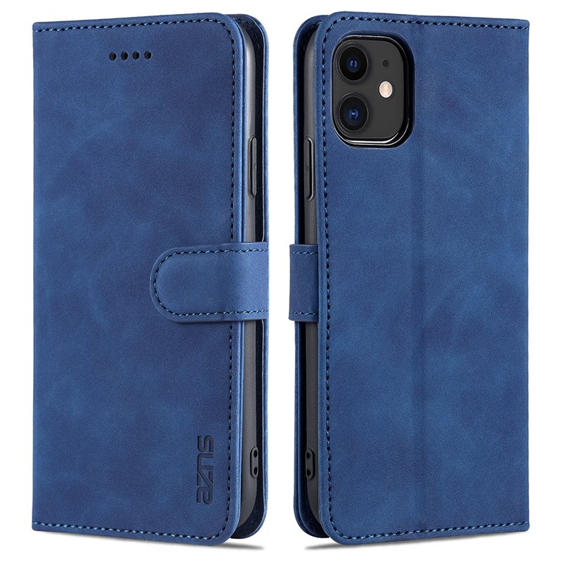 Upptäck AZNS iPhone 12/12 Pro Skal i äkta läder. Detta stiliga och funktionella skal erbjuder både skydd och praktiska funktioner. Med sin blå färg och smarta design är det det perfekta valet för din iPhone 12 eller 12 Pro. Håll dina kort och kontanter säkra samtidigt som du njuter av en elegant look.