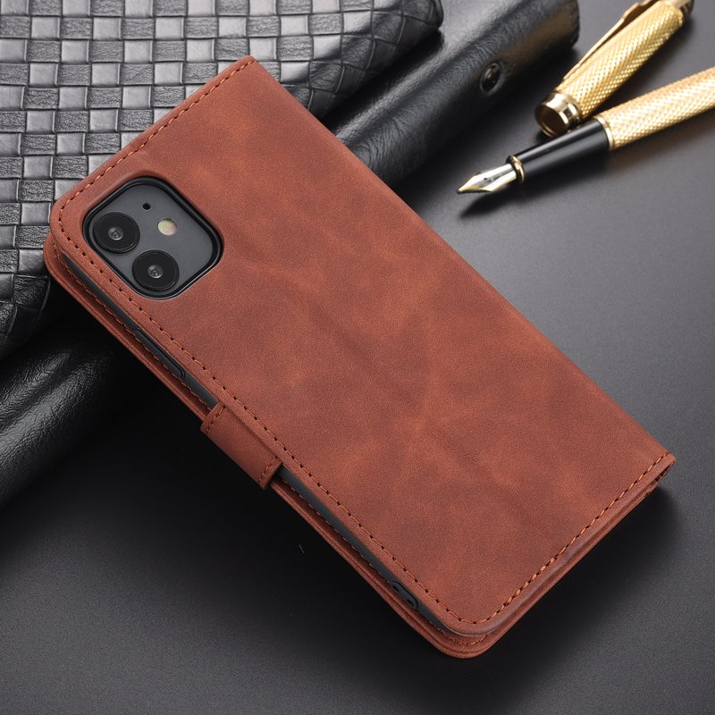 AZNS iPhone 12/12 Pro Skal i PU Läder erbjuder både stil och funktionalitet. Detta bruna skal har en praktisk ställfunktion och smarta kortfack. Skydda din telefon med ett elegant och hållbart fodral som också gör det enkelt att ha med sig det viktigaste.