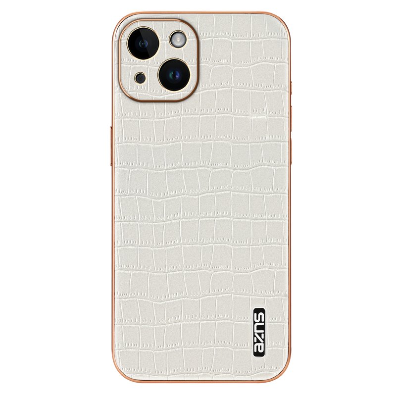 AZNS iPhone 13 Fodral Crocodile Textur Äkta Läder - Vit