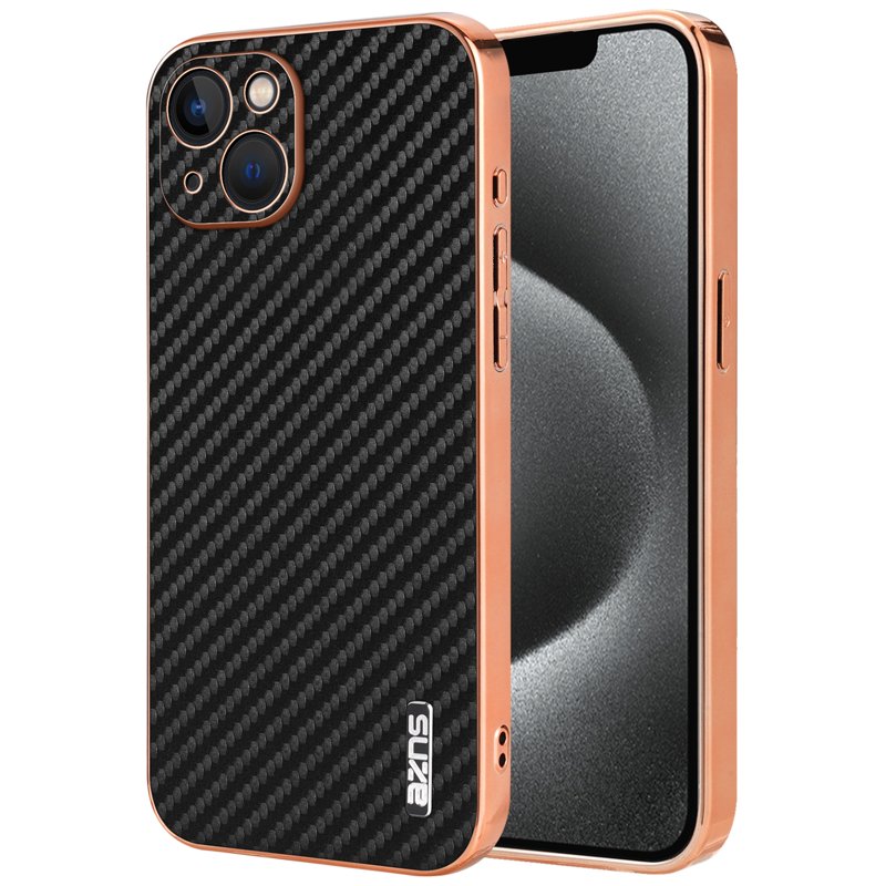 AZNS iPhone 13 Fodral Electroplating Carbon Fiber PU+TPU - Svart
