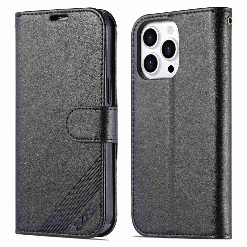 AZNS iPhone 14 Pro Max Fodral i PU-läder - Svart