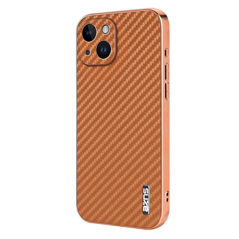 AZNS iPhone 15 Fodral Electroplating Carbon Fiber PU+TPU - Brun